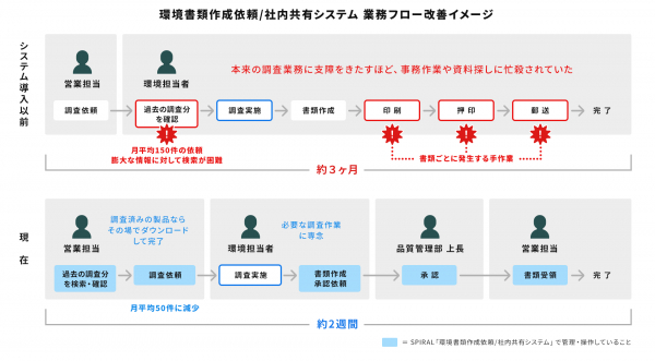 【導入事例】環境負荷物質調査書類の発行・検索・管理システムをSPIRALで構築 〜 書類作成のリードタイムを3カ月から2週間に短縮。劇的な業務効率化を実現 〜