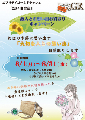 【想いの丈お買取りキャンペーン第4弾】エブリデイゴールドラッシュ8月の“想い出査定”お盆の季節に想い出す大切な人への想いお買取りします