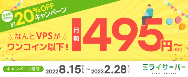 Unix系ホスティングサービス 『ミライサーバー』を8月15日より提供開始! VPSが月額495円(税込)から利用可能な初年度年払い約20%OFFキャンペーンも実施!