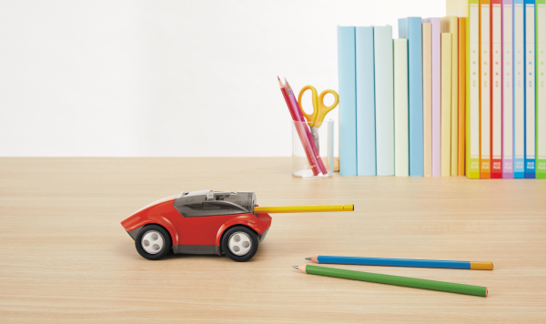 「ハシレ!エンピツケズリ!」は、鉛筆を差し込み、腕、肩、体重を使って車を動かすだけで、楽しく軽く、子どもでも簡単に鉛筆を削ることができます。鉛筆を削る行為そのものに楽しさを取り入れることで、勉強のポジティブなサポートになる、これまでにない新しい鉛筆削りです。