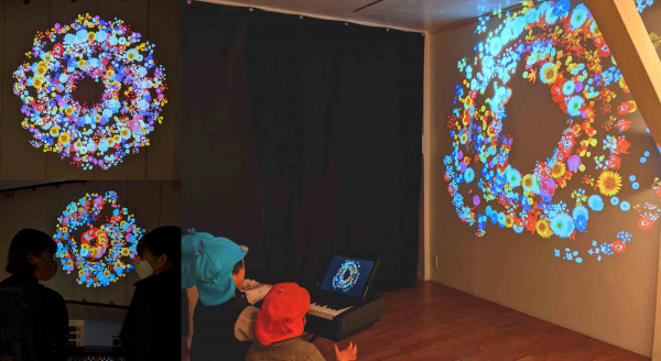 ピアノの音を花畑の映像に変換することができるインタラクティブアート作品。
