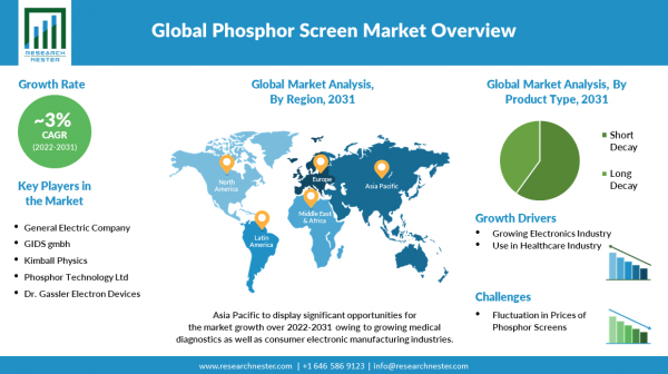 蛍光体スクリーン市場―製品タイプ別(ショートディケイ、ロングディケイ)、アプリケーション別(電気通信、ヘルスケア エレクトロニクス、など)、地域別―世界の需要分析と機会の見通し2022―2031年