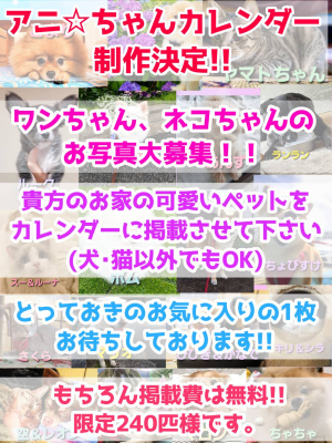 当番組では、現在、視聴者の方々のご協力をいただき、2023年のワンちゃんネコちゃんカレンダー作成企画を行っています?