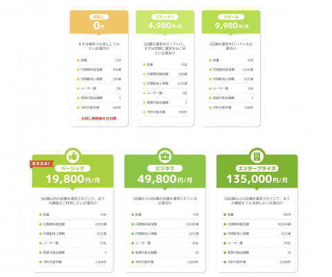 料金形態は、お試しプランを含め6つのプランをご用意しました。