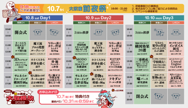 ・前夜祭(早期特典参加):2022年10月7日(金)16:00 〜 21:00