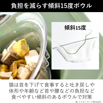 ◎【傾斜15度フードボウル】 猫は首を下げて食事すると吐き戻しや首や腰に負担がかかるため食べやすい傾斜で対策済み