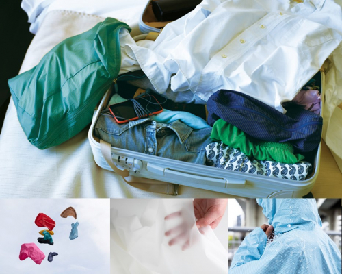「オーガナイザー」は、XSサイズでわずか10gという超軽量。撥水機能付きで、濡れた荷物を入れても安心。また「おふろ手ぬぐい」は『注染』染めでロゴを表現。最高級手ぬぐい生地使用で、使い込むほどに柔らかな肌触りになるという優れモノです。