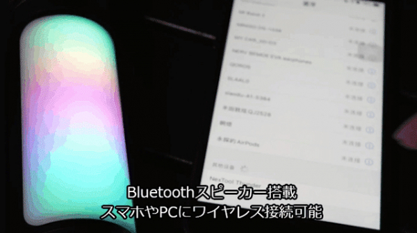 Bluetoothスピーカー搭載で、スマホやPCなどのデバイスを簡単にワイヤレス接続できます。内蔵の2w高音質スピーカーは、音量を増幅させるアンプが内蔵されているので、迫力ある大きな音を鳴らします。
