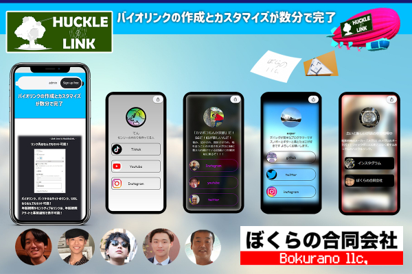 中学生が代表を務める、モバイルゲームアプリ開発会社「ぼくらの合同会社」 (所在地:神奈川県相模原市 ボス 内川空(中学校1年生 12歳)URL: https://bokurano.tech/ )は、geekline合同会社(所在地:神奈川県相模原市 代表社員:内川天(21歳) https://geekline.biz/ )と合同で、世界中のインフルエンサーに向け、パーソナルリンクを、オンリーワンな一つのリンク集ページとして作成、配信可能な「ハックルリンク」( URL: https://huckle.link/ )のサービスを2022年9月28日開始しました。