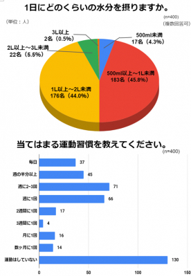 4.1日にどのくらいの水分を摂りますか。【複数回答可】(有効回答数:400)