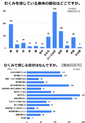 ・次いで「身体が重だるい」、「靴下の跡が取れない」「顔やまぶたが腫れている」等が挙げられました。