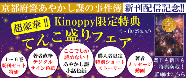 京都本大賞受賞の人気シリーズ 「京都府警あやかし課の事件簿」電子書籍購入者特典付きフェアが 9月30日より紀伊國屋書店Kinoppyにて開催