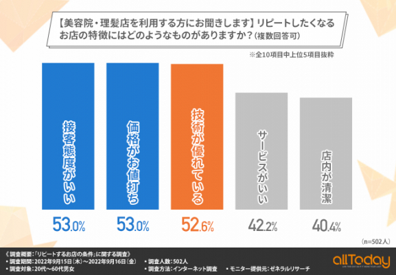 リピートしたくなる特徴として、まずはその店の技術を重視しているという方が多いようです。
