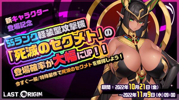 今回のアップデートでは、<パブリックサーバント>SSランク軽装型攻撃機「死滅のセクメト」(Cv. 沼倉愛美)が追加となりました!