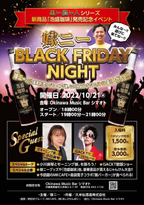 「黒い濃い人泡盛珈琲」の発売を記念して10月21日(金)に「嫁ニーBLACK FRIDAY NIGHT」を開催します。