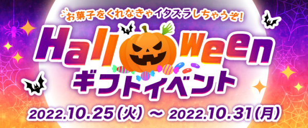アプリ版・WEB版とも、「Halloweenギフトイベント」のイベントバナーからエントリーしてください。