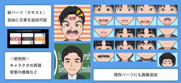 パーツに使用できる画像も20種ほど追加され、これまで以上にさまざまな表情、表現が可能になりました。