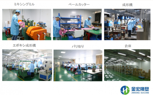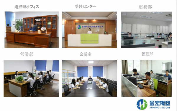 東莞市金宏シリコーン ゴム有限会社は精密なシリコーン ゴム製品の研究開発と生産経験を行っている会社です。2014年に設立し、資本金は 500 万元、そして工場面積は 4,000 平方メートルを有しています。また、ソリッドステート シリコーン成形機 14 台、エポキシ生産ライン 14 台を保有し、社員は約100名在籍しております。さらに研究開発者6名、エンジニア 4 名、品質管理担当者 10 名、従業員 80 名おります。70%以上の製品を日本へ輸出しております、日本の製品に対しては、豊かな経験を持っております。製品の品質を向上させ、会社は ISO9001と ISO14001: 2015 環境管理システム認証を取得し、厳しく国際標準に合わせた管理を行っております。