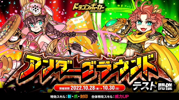株式会社アソビズム(本社:東京都千代田区、代表取締役:大手智之)は、App Store・Google Playにて好評配信中のリアルタイム合体カードバトル『ドラゴンポーカー』で、2022年10月28日(金)より「アンダーグラウンド」をテスト開催いたします。