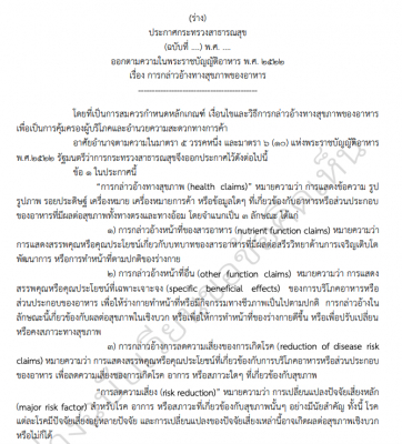 タイFDA食品部門が「食品のヘルスクレームに関する公衆衛生省告示」の意見募集稿を発表、WWIPは日本語翻訳を実施、内容の一部を公開