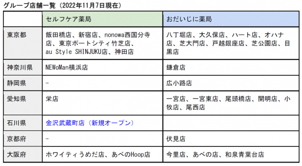 セルフケア薬局、石川県初出店。全国グループ店は31店舗へ。
