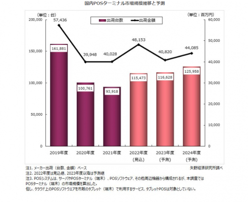 【矢野経済研究所プレスリリース】POSターミナル市場に関する調査を実施(2022年)〜2021年度のPOSターミナル出荷台数は93,918台と低水準にとどまる〜