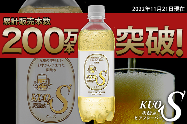 株式会社OTOGINO(オトギノ:代表取締役社長 鬼武公洋 本社 大分県日田市北友田 2 丁目 2123 番地 1)がECサイトにて販売しているビールテイストが人気の強炭酸水、『KUOS -クオス-ビアフレーバー』(https://www.kuos.jp/beer/)が2022 年11 月21 日時点で累計販売本数200万本を突破しました。