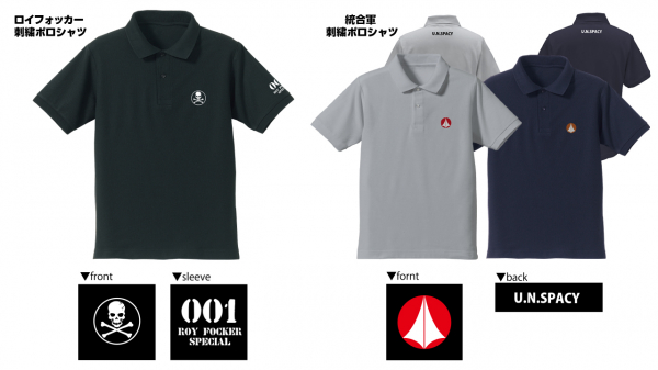 『超時空要塞マクロス』からは、バルキリースカル大隊の隊長であるエース"ロイ・フォッカー"と、そのフォッカーが所属する"統合軍"のマークが施された刺繍ポロが6サイズで展開。