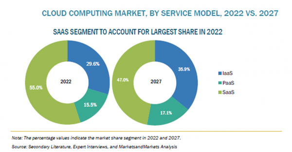 サービスモデル別に、IaaSが高いCAGRで成長