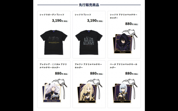 コラボカフェ期間中、物販コーナーにて『陰の実力者になりたくて!』関連商品を販売いたします。グッズ購入のみの入店も可能です。