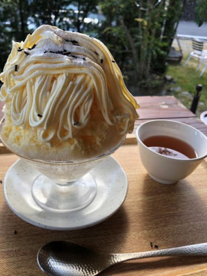 過疎地でもある地元那智勝浦町をかき氷で町おこしをしたい、冬でもコールドスイーツで熱狂させたい!というオーナーの思いから、「真冬のパンプキン」が開発されました。羽ごおりの削り技法を用いた絶品の「かき氷」を冬でも楽しんで欲しいと、女性が好きな「いもくりなんきん」(芋・栗・南瓜)でメニューを開発。多くの方に味わって頂きたいかき氷です。