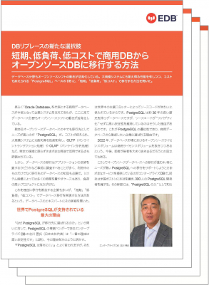 エンタープライズDB(EDB)は「短期、低負荷、低コストで商用DBからオープンソースDBに移行する方法」と題するeBookをリリースいたしました。