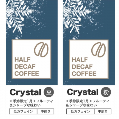 【新商品】 Half Decaf Coffee 季節限定1月度 Crystal コーヒー豆/粉 を2023年1月15日より販売開始 〜カフェイン少なめ、本格芳醇焙煎コーヒー〜