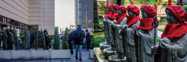 鳩、カラス、小公園、墓地、女性たち、お地蔵さん、古ぼけた団地、警察官、さまざまな花、蝉の亡骸、豚、路上の影、猫、夕闇の中のお堂、倒れた自転車、銅像、蜘蛛の巣、おみくじ、教会。