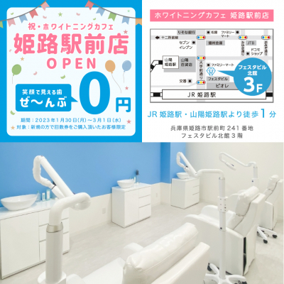 さらに、ホワイトニングカフェ姫路店のオープンを記念して新規限定でホワイトニング初回分無料キャンペーンを実施中。