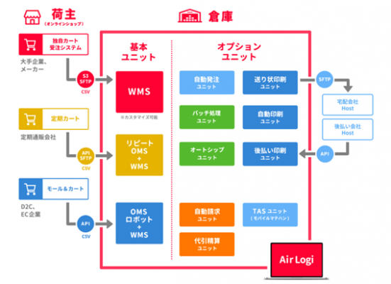 ユニットを選択して使えるクラウドWMS「AirLogi」システム連携イメージ