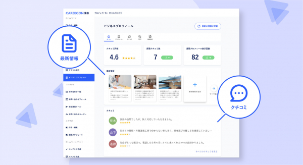 建設業界のDX(デジタルトランスフォーメーション)を目指すBRANU株式会社(本社:東京都港区 / 代表取締役CEO:名富達哉 / 以下ブラニュー)は、建設中小企業向けデジタルマーケティングツール「CAREECON 集客」に、MEO(マップエンジン最適化)対策を通じてローカルビジネスのDXを推進できるビジネスプロフィール連携機能をリリース。2023年2月22日より提供を開始しました。