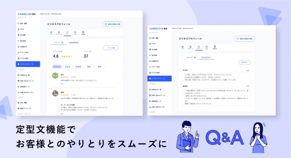 お客様が投稿したクチコミやQ&Aに対しての回答も行えます。クチコミに返信する際は、よく使う文章の雛形をあらかじめ登録できる定型文機能を用意。これによりスムーズな返信が可能となります。