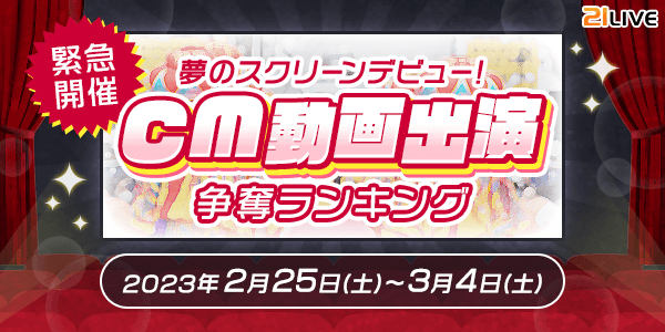 【21LIVE】緊急開催!「CM動画出演・争奪ランキング」TOP10入賞で映画上映前に放映するCMに出演☆沖縄で夢のスクリーンデビュー♪