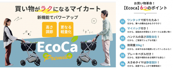 販売開始 約1年で売上約11億円突破!「免許返納後の買い物に便利」「腰痛対策に」など、お客様の声続々! EcoCa プレミア 2月22日よりmakuakeに登場