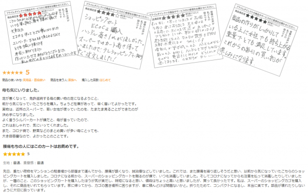 EcoCaショッピングカートを実際にご購入いただいたユーザーの皆様のお声を聴き、新機能を付加しプレミアを開発しました。毎日のお買い物をさらにラクに、快適にしてくれます。