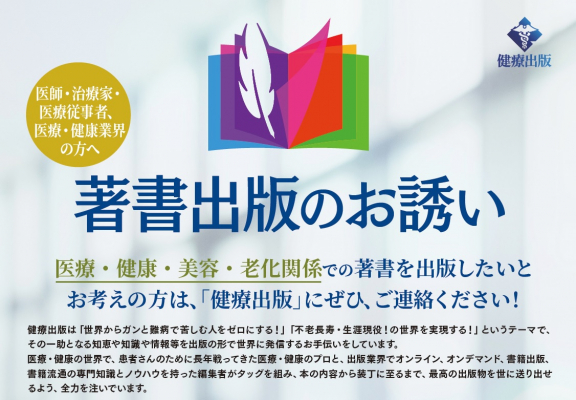 株式会社健康長寿医療維新(東京都八王子市、代表取締役小林平大央)は、出版部門「健療出版」の新サービスとして、書籍出版を中心に「書籍出版+治療研究+流通+PR+広告など」複合的な販促企画として「統合販促企画」を3月より開始すると発表しました。