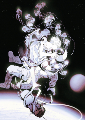 講評:躍動感のある構図、題材へのアプローチ、前後を想像させるドラマチックなストーリー性。どれを取っても完成度の高い作品。ここに描かれているのは、生か死か。消え入るように白い少女は何者なのか。クラゲの意味するものとは?宇宙の神秘的な世界と相まって、じっくり想像しながら眺めていたい逸品。