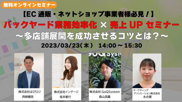 4社共催セミナー【EC通販・ネットショップ事業者様必見!】バックヤード業務効率化×売上UP セミナー 〜多店舗展開を成功させるコツとは?〜を2023年3月23日に開催!