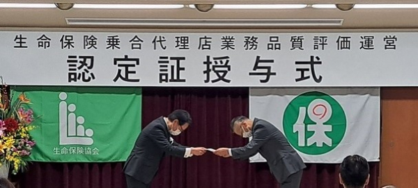 以下は2023年2月24日 生命保険協会による認定代理店への認定証授与式の模様です。