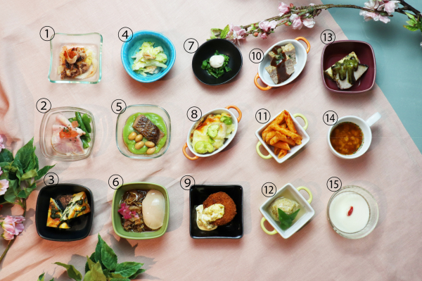 春メニューは、料理人が手作りする旬の食材を使った15種類の小鉢がフルリニューアル。インバウンドのお客様が増えてきているため、今回の春メニューは洋食をさらに充実。ハンバーグのような味付けに整えたミートローフや、生ハムの感覚で召し上がっていただける低温調理の豚ロース肉など、ホテルビュッフェに定番の料理を、銀座朝食ラボなりにアレンジし、一味違う定番の洋食をご用意いたしました。