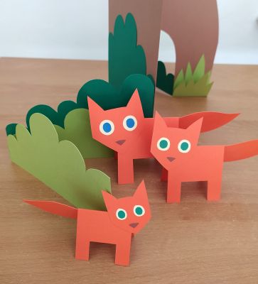 切り絵の技法を使って小さな森とキツネの飾りを作るワークショップです。キツネは背景を動き回ったり、茂みに隠れたり。遊ぶのも、物語を語るのも、あなた次第!
