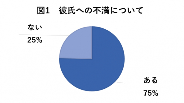 彼氏に不満を持っているかの調査では、「ある」という方が75%、「ない」という方は25%という結果に。