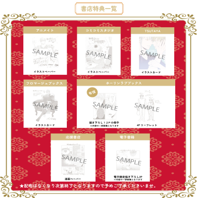 ※購入特典は原則、上記URL記載の店頭にてお買い上げいただいた方に配布されます。各書店さまのECサイトでご購入いただいた場合に特典が付かない場合もございますので、あらかじめご了承ください。