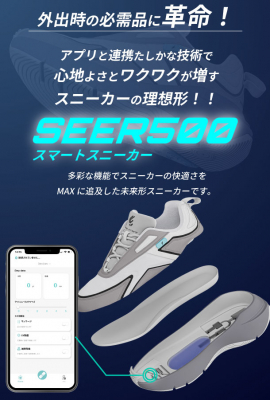 ・タイトル:快適なお出かけを実現!5つの機能をアプリで操作、未来型スニーカーSEER500